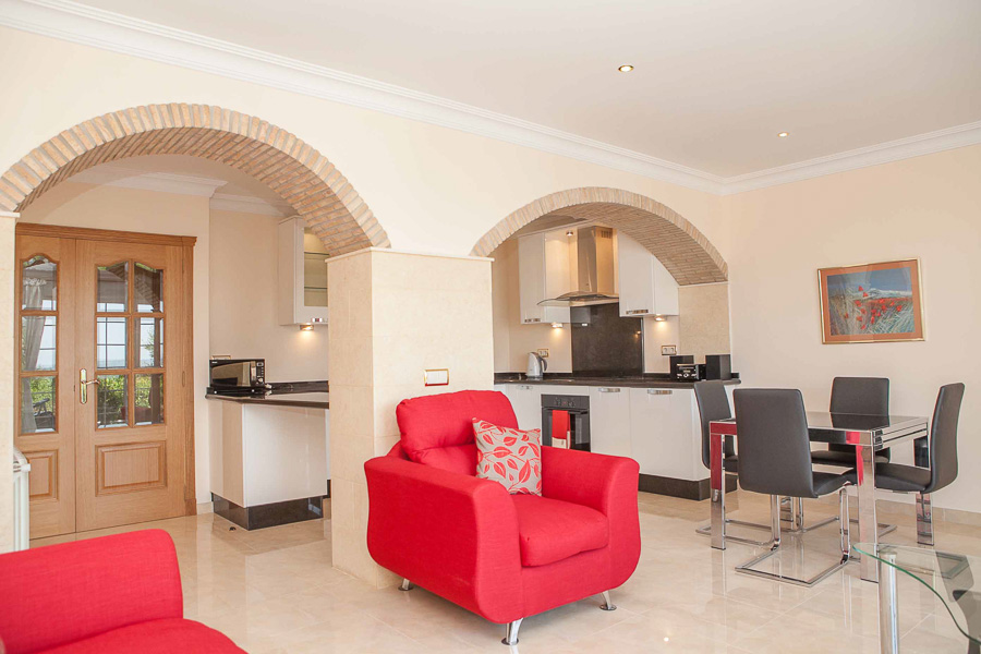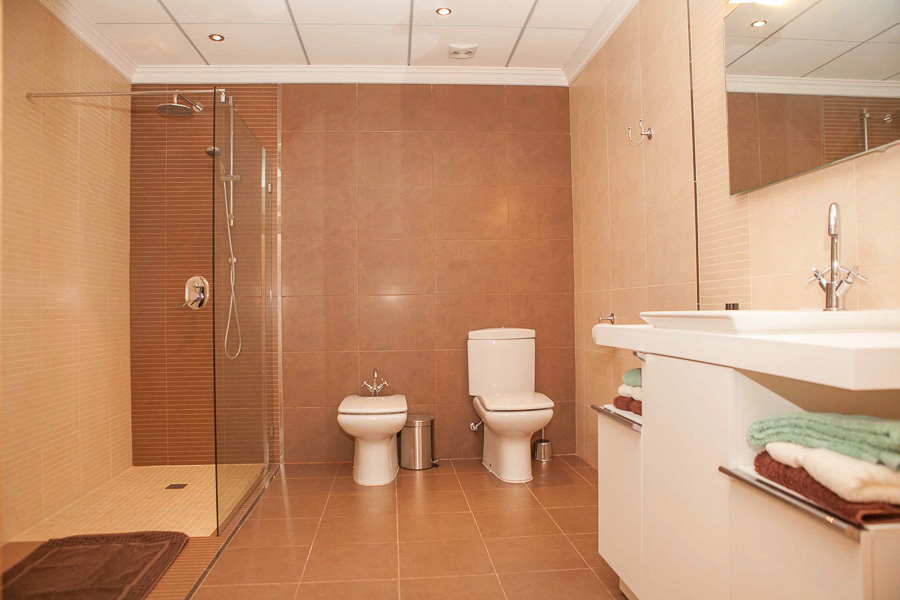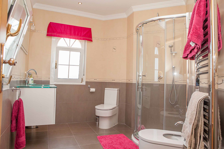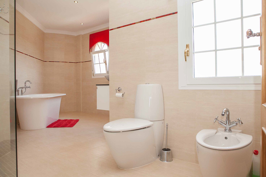 The main villa has 3 large double bedrooms and 3 bathrooms including the master en-suite with a complete bathroom including a feature bathtub and a separate shower unit. There is a private balcony off the master suite with magnificent views. All bedrooms have large fitted wardrobes and tiled floors and are light filled.